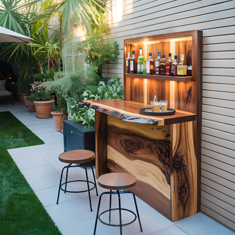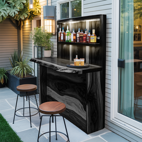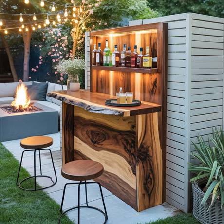 Regular price From $4,300.00Unit price /UnavailableLive Edge Wall Mounted Outdoor Bar With Shelf And Lights For Patio Or Garden