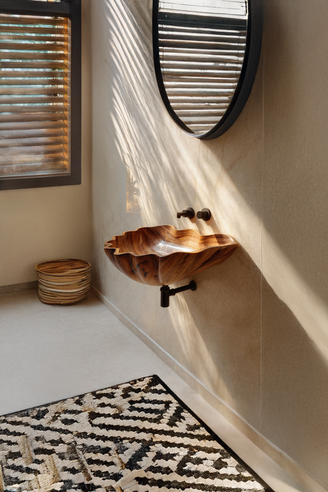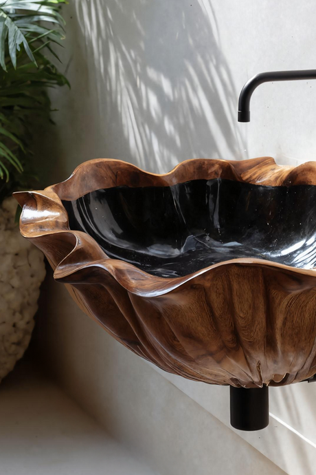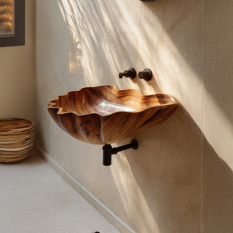 Handcrafted Solid Wood Wash Basin For Artistic Bathroom Interior Decor