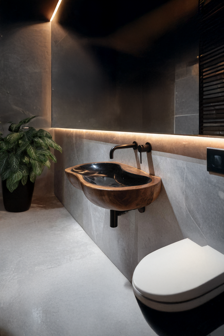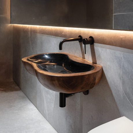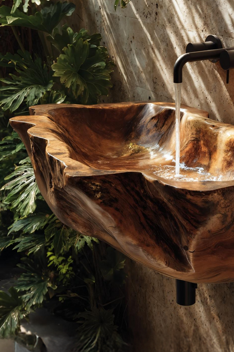 Modern Live Edge Wood Basin For Contemporary Bathroom Interior Design