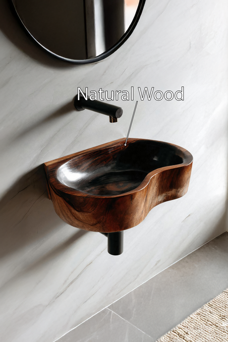 Modern Wooden Live Edge Wood Basin For Minimalist Bathroom Design