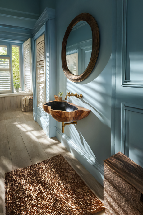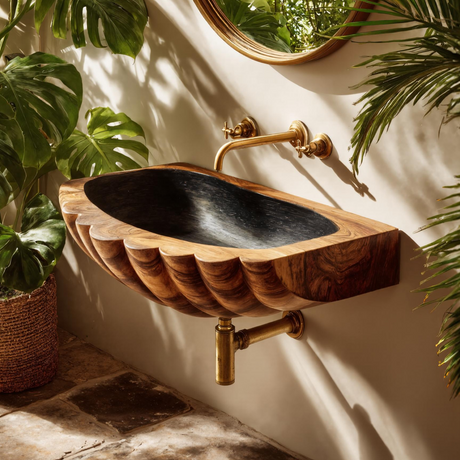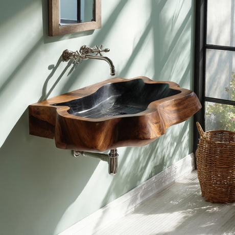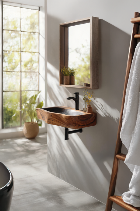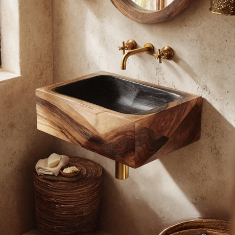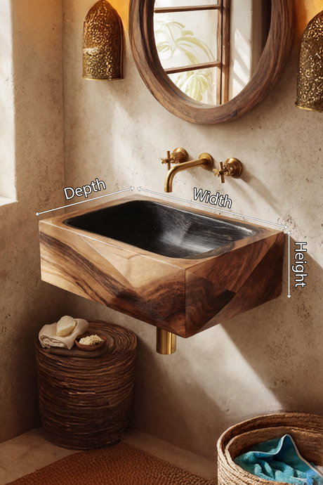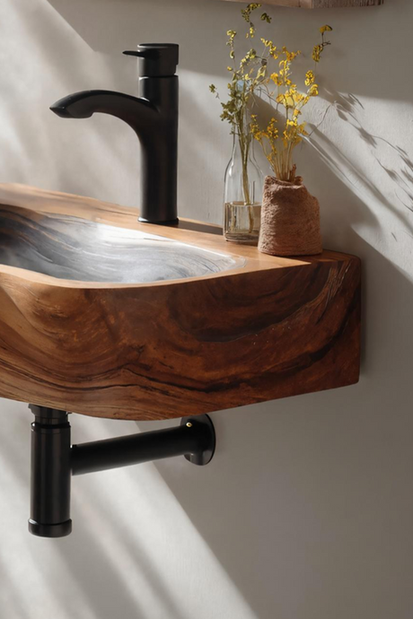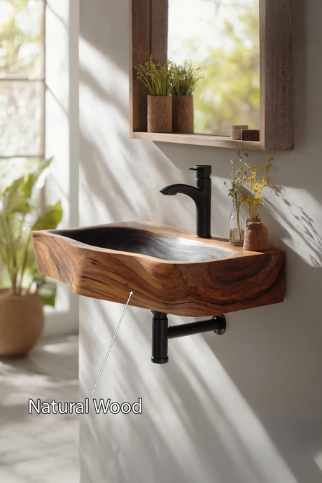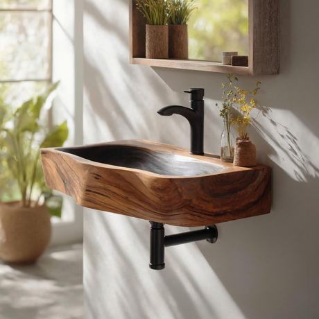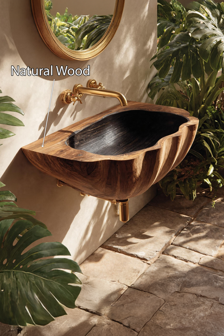 Handcrafted Wall Mounted Wooden Bathroom Sink For Natural Bathroom Decor