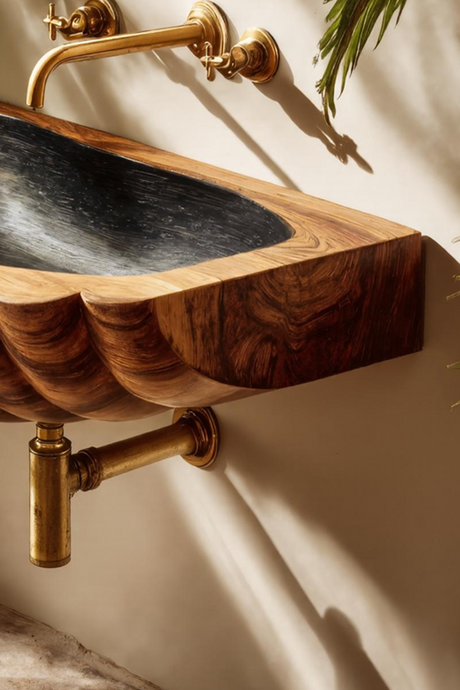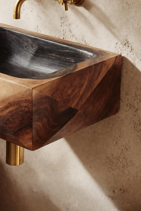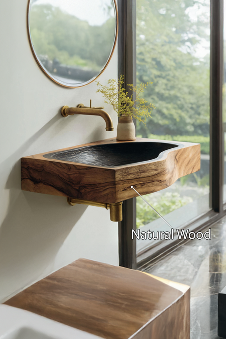 Handcrafted Solid Wood Vanity Sink For Luxury Bathroom Furniture Decor