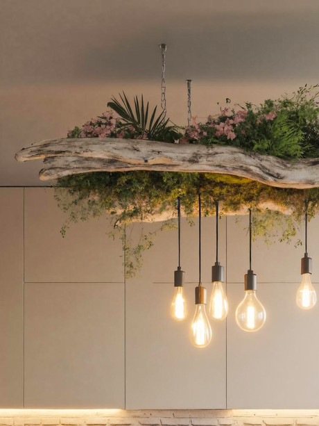 Rustic Log Beam Pendant Lighting For Kitchen Island