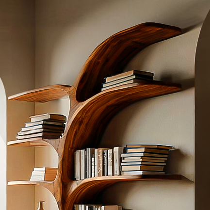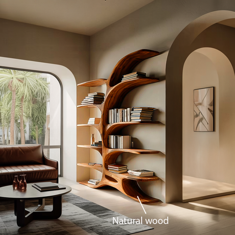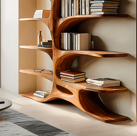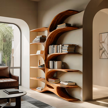 Organic Sculptural Bookshelf With Curved Design For Living Room
