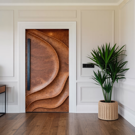 Coastal Wave Carved Door For Front Entrance And Modern Villa