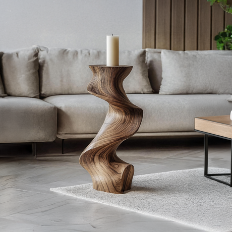 From sleek metal finishes to rustic wood or glass, the choice of material can dramatically affect the mood. Some candle holders even resemble an Abstract Sculpture, doubling as art pieces that highlight your unique taste.