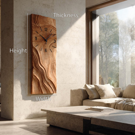 Organic Vertical Sculptural Wall Clock For Living Room