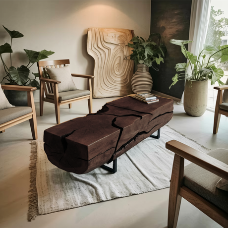 Organic Coffee Table With Charred Cracks For Living Room