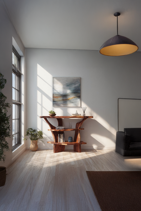 Console tables work in tandem with Wall Mounted Shelves, offering layered visual interest. While shelves draw the eye upward, a console table grounds the space and provides a platform for complementary décor pieces, such as framed photos, plants, or art objects. This vertical and horizontal balance adds depth and dimension to your home interiors.