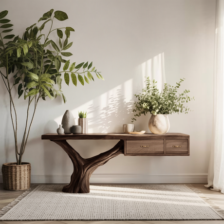 Console tables work in tandem with Wall Mounted Shelves, offering layered visual interest. While shelves draw the eye upward, a console table grounds the space and provides a platform for complementary décor pieces, such as framed photos, plants, or art objects. This vertical and horizontal balance adds depth and dimension to your home interiors.