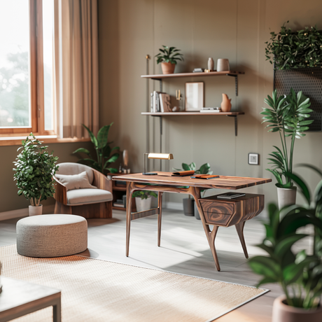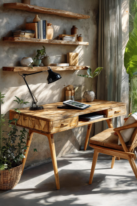 Wood desks that double as artistic features are gaining popularity. With flowing shapes and unique textures, some even incorporate elements of abstract sculptures. These desks serve not just as workspaces but as conversation starters and focal points in a modern home office.