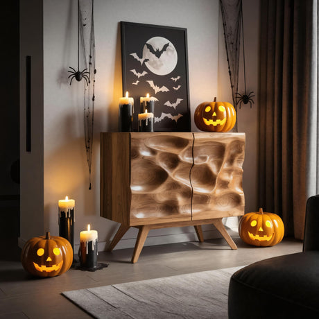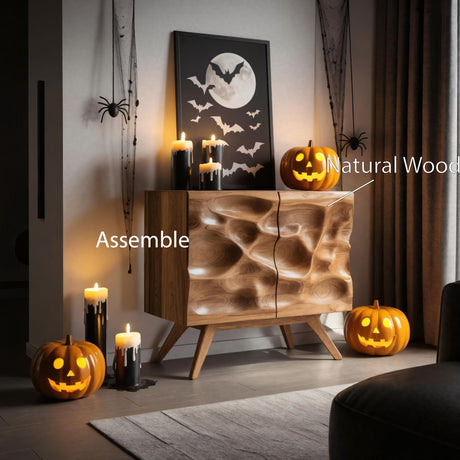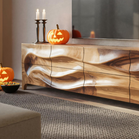 Artistic Halloween Wavy Wood Sideboard For Living Room Or Hallway
