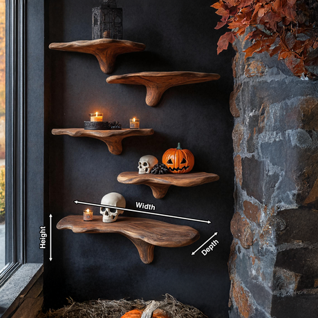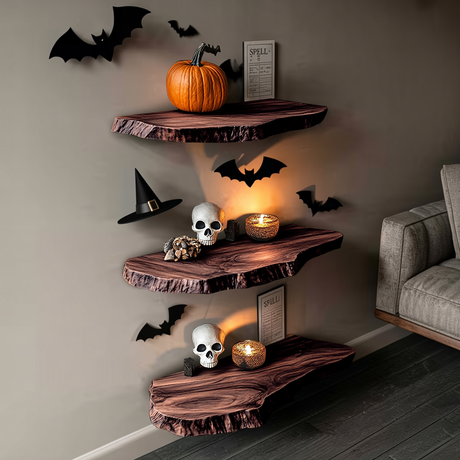 Regular price From $168.00Unit price /UnavailableHandcrafted Wooden Live Edge Floating Shelf For Entryway Design With Halloween Hooks