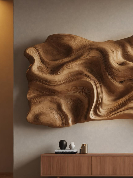 Modern Sculptural Wall Art With Abstract Carved Panel For Lounge