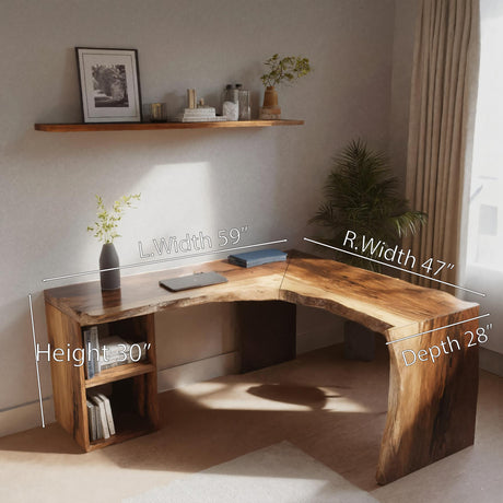 Regular price From $1,260.00Unit price /UnavailableRustic Live Edge L Shaped Desk With Bookshelf For Workspace