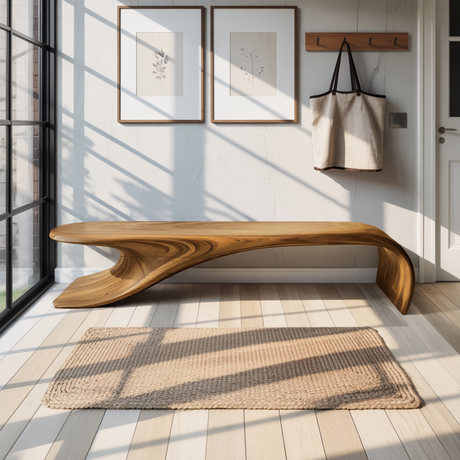 Modern Sculptural Bench With Flowing Curves For Living Room