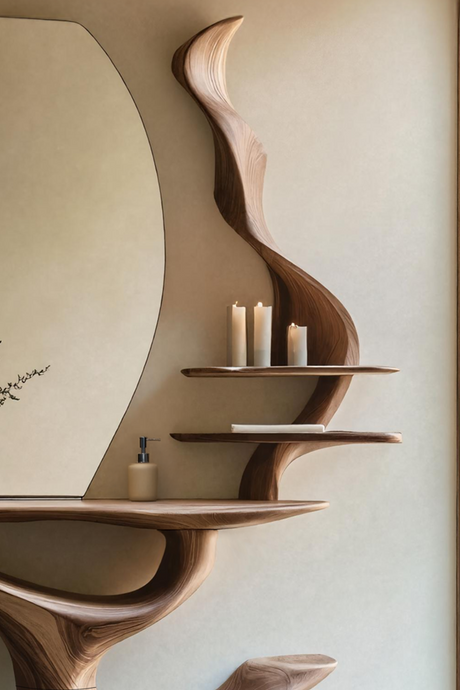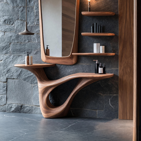 Floating shelves or stackable trays maximize space above and around the vanity. This approach mirrors the efficiency of bathroom setups with Vessel Sinks, where every inch matters.