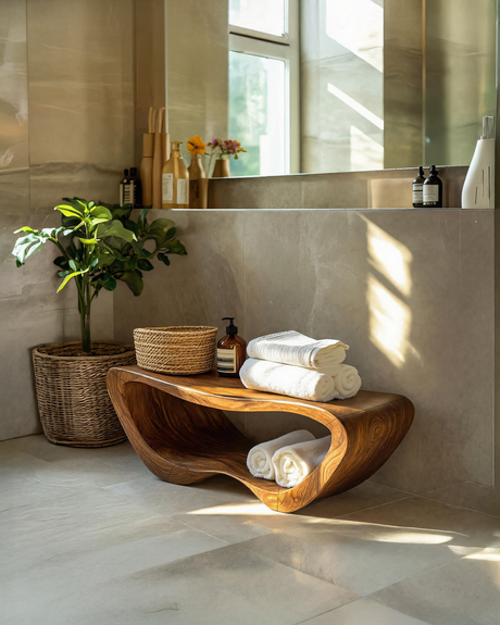 Modern Organic Shower Bench For Spa Decor Or Bathroom