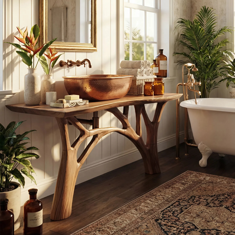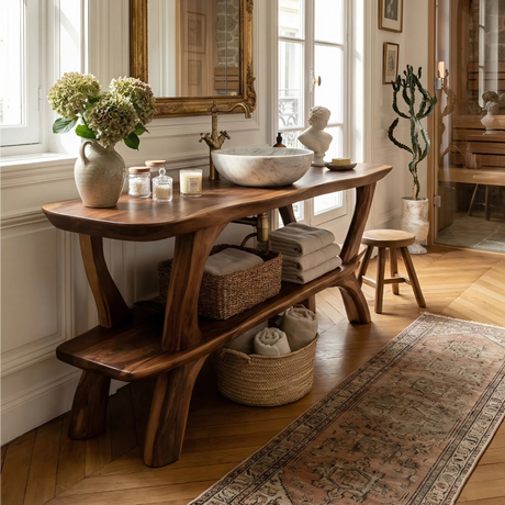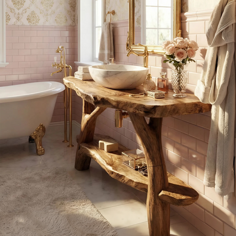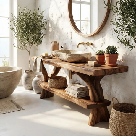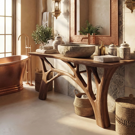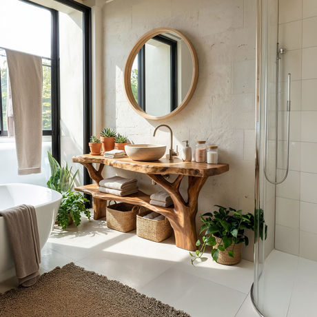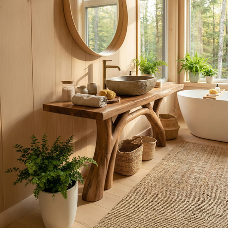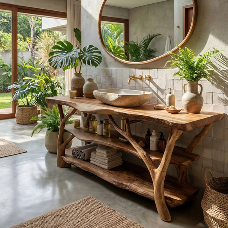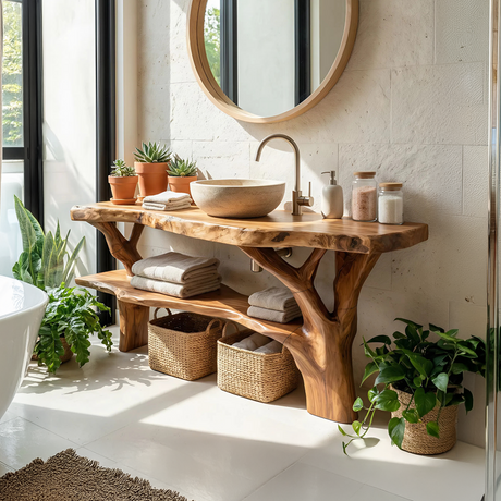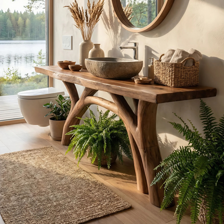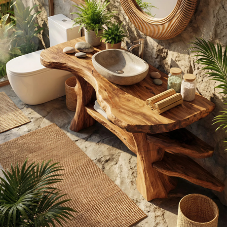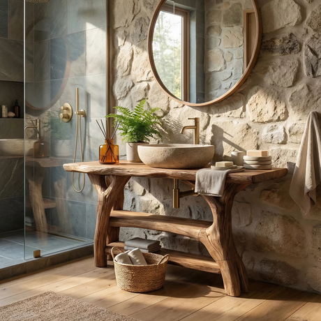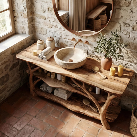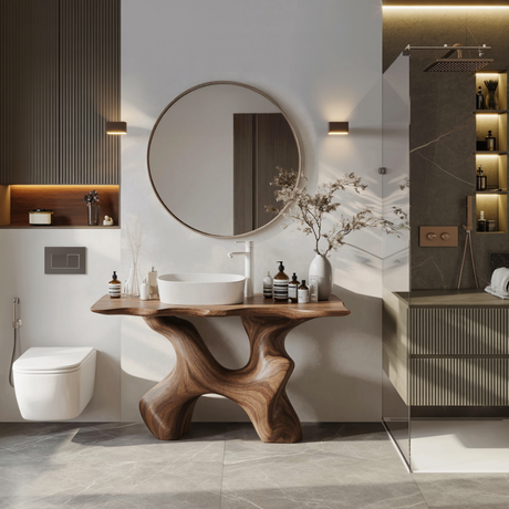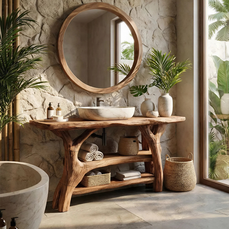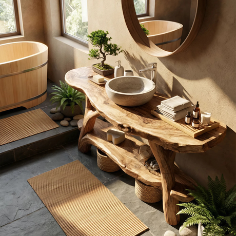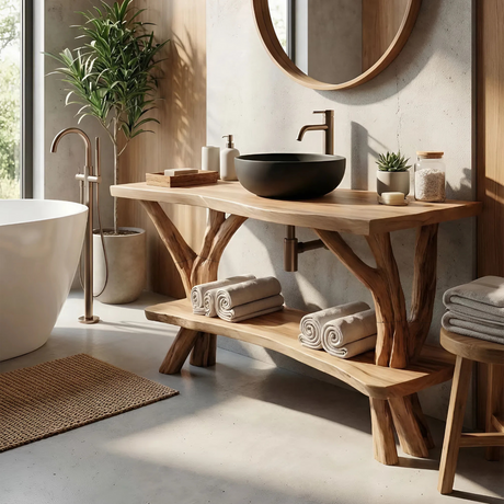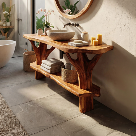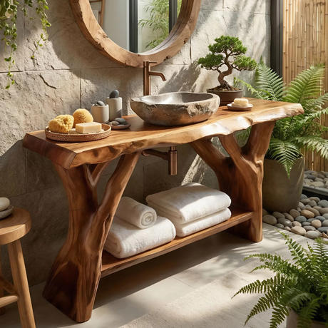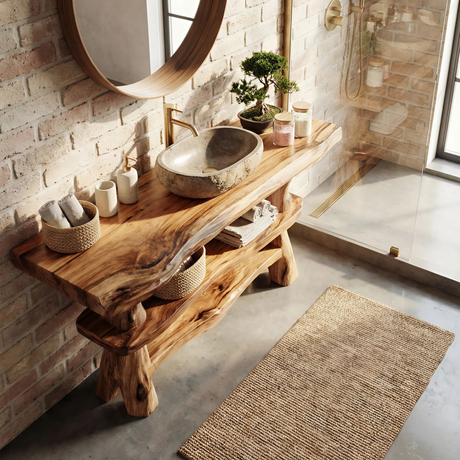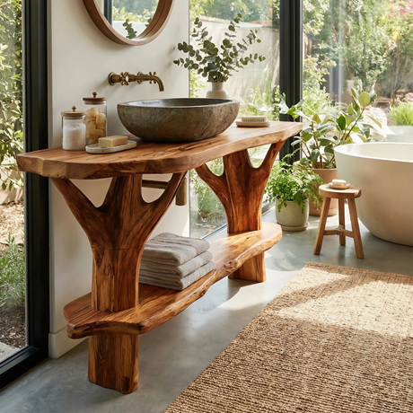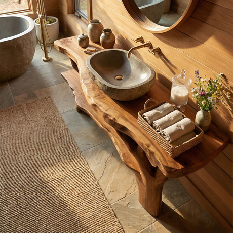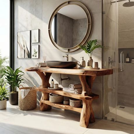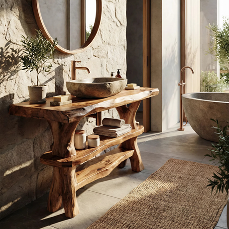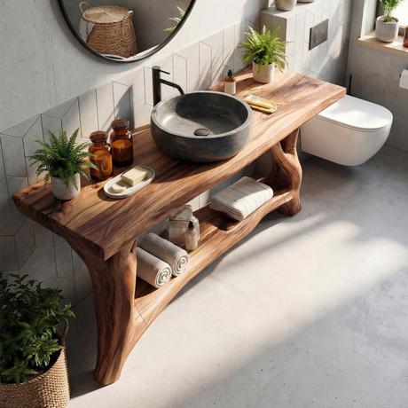 ET Woodcrafts uses sustainably sourced and reclaimed wood, creating eco-conscious products that blend beauty and responsibility. Each bathroom vanity is handcrafted to reduce waste and celebrate natural materials.