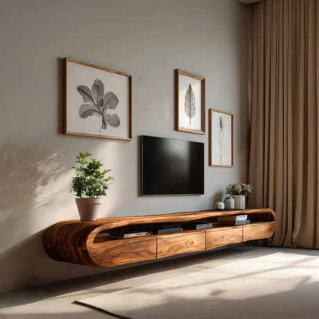ET Woodcrafts' designs blend tradition with innovation, ensuring that every wooden TV cabinet not only functions flawlessly but also enhances your living room with warmth and character.