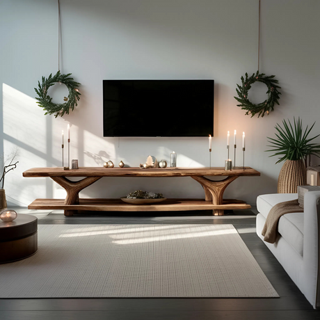 Handcrafted Wooden Live Edge TV Console For Holiday Entryway Design