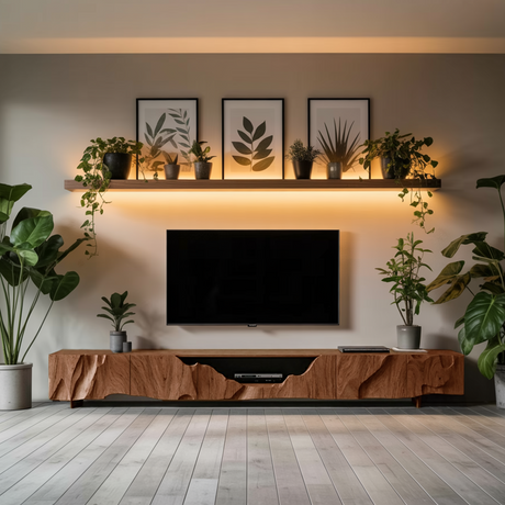 Create a sleek, modern look with a floating cabinet. These designs free up floor space, making your Living Room feel larger and more open - perfect for pairing with a minimalist table aquarium.