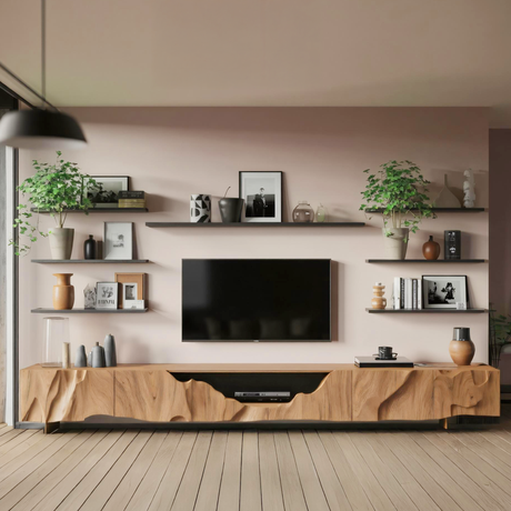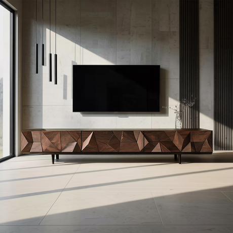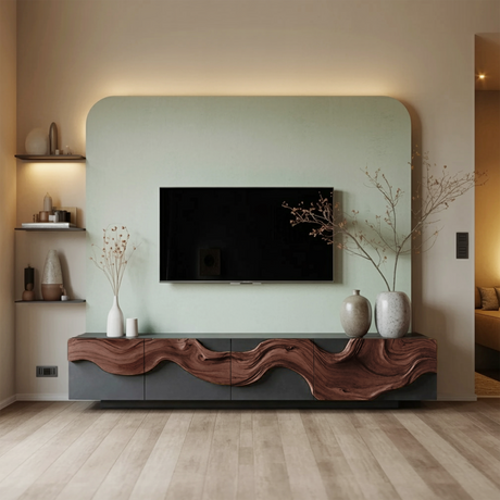 ET Woodcrafts' designs blend tradition with innovation, ensuring that every wooden TV cabinet not only functions flawlessly but also enhances your living room with warmth and character.