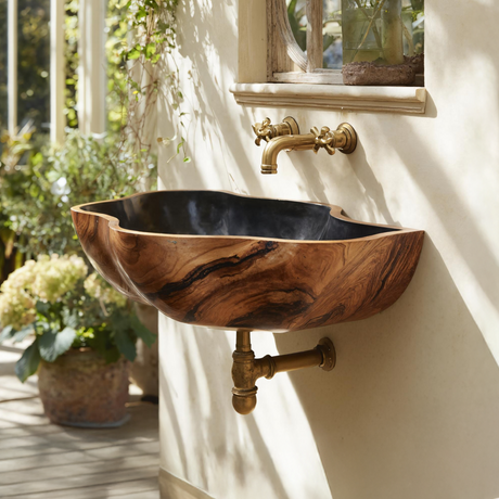Handcrafted Wooden Wall Mounted Bathroom Sink For Natural Decor