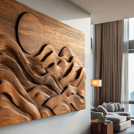 Modern Sculptural Wall Art With Abstract Carved Panel For Lounge