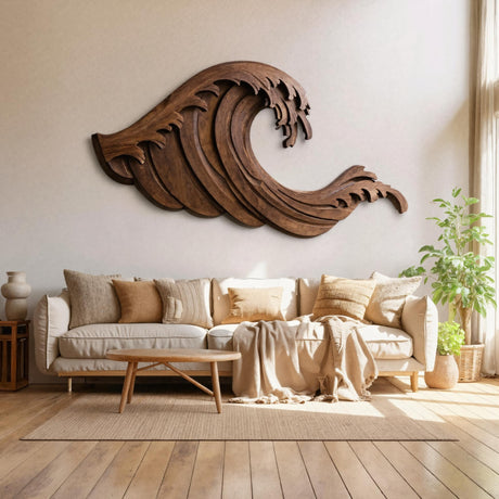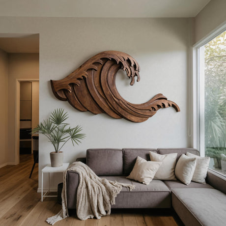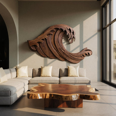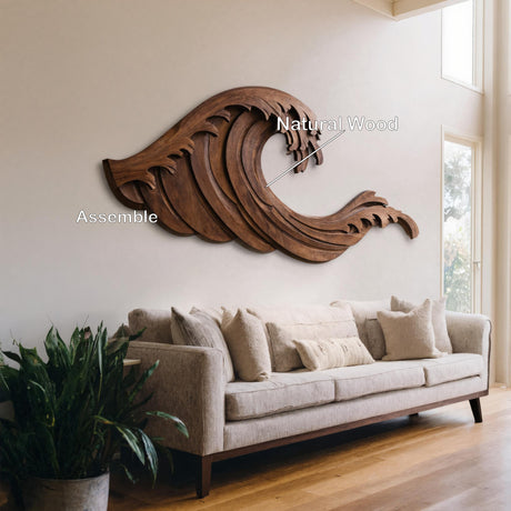 Organic Carved Wave Wall Art Above Sofa For Living Room