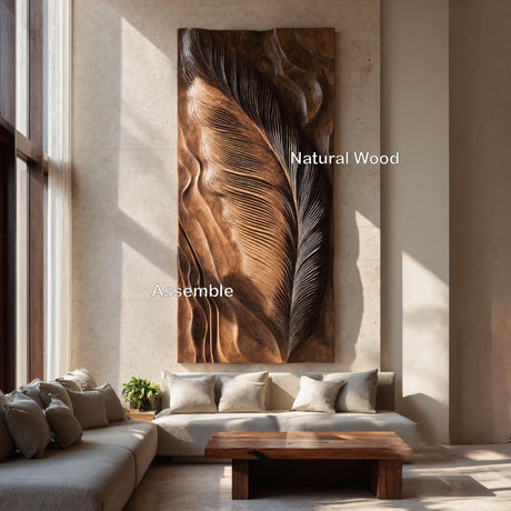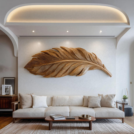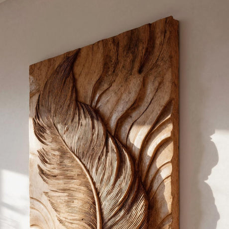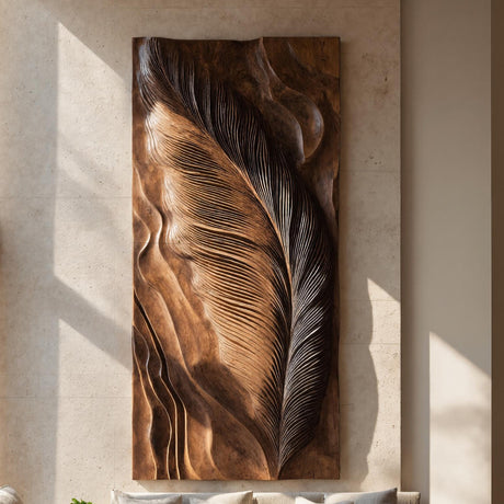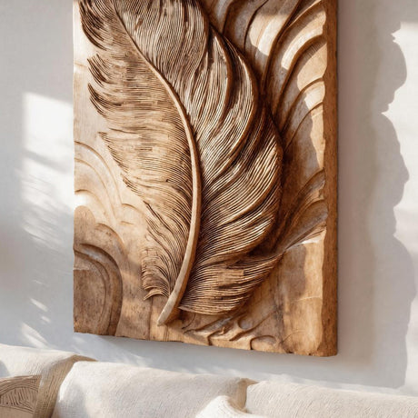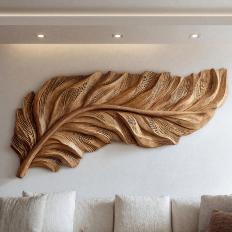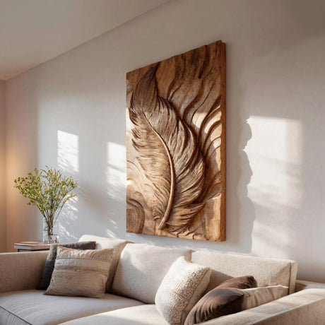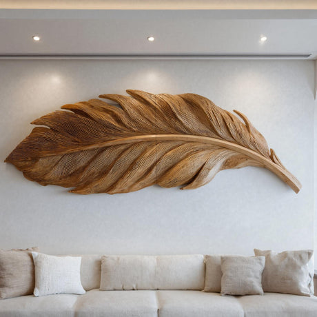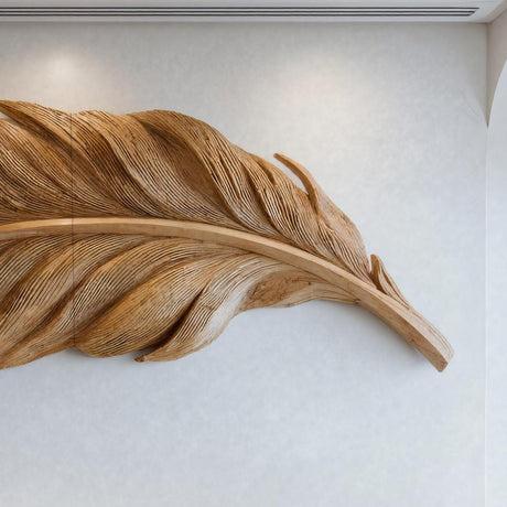 Hand Carved Feather Wall Art For Contemporary Living Room