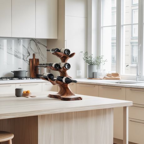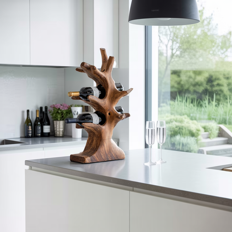 Wine holders come in many creative shapes, from minimalist racks to sculptural statement pieces. Displaying them on Kitchen Countertops is a great way to showcase your style.