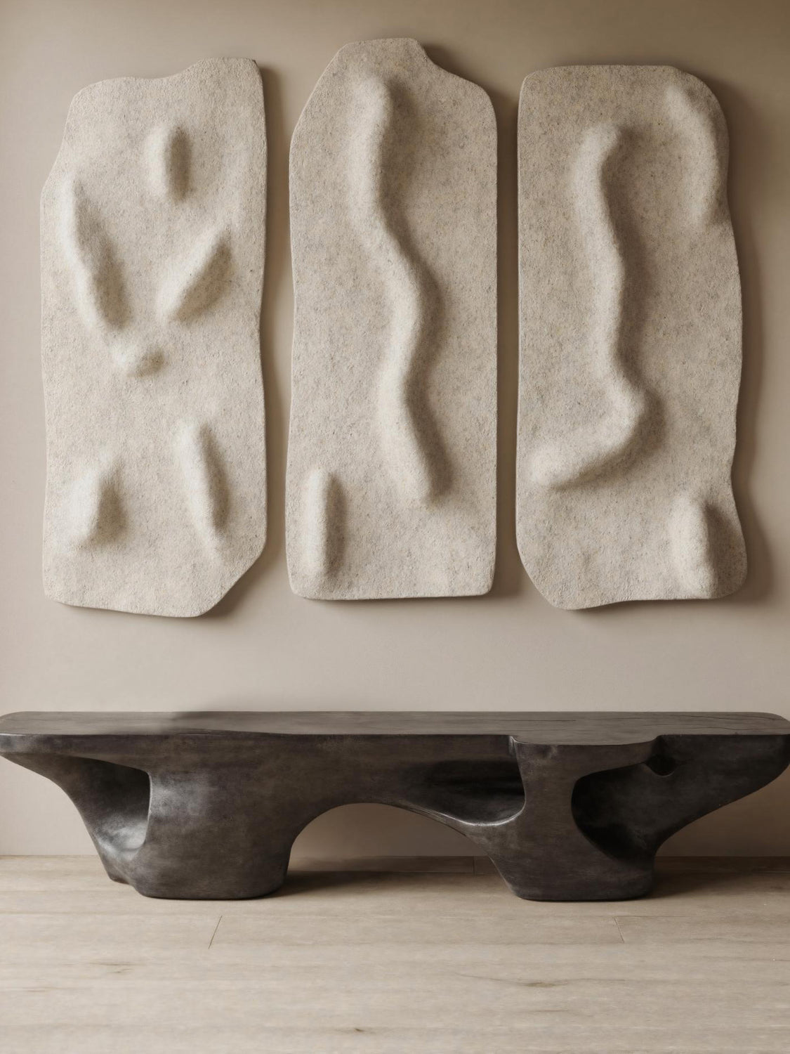 Contemporary Sculptural Bench With Carved Design For Living Room