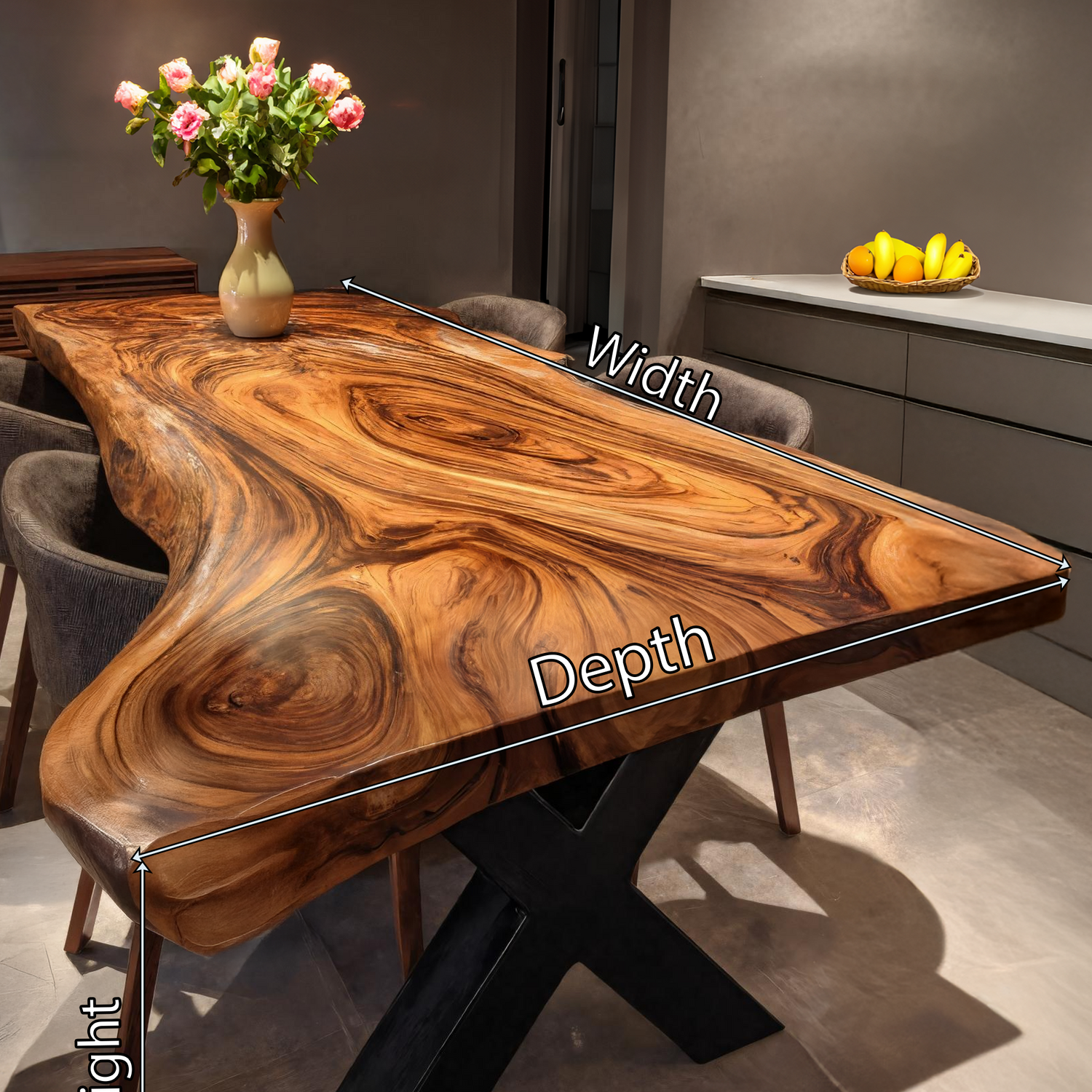 Enhance your home with the Dining Room Farmhouse Live Edge Dining Table Rustic Wood, a piece crafted to bring natural warmth, grounded character, and a welcoming presence to your dining space. Its rustic live edge detailing and textured wood grain create an inviting focal point for family meals, gatherings, and everyday use.