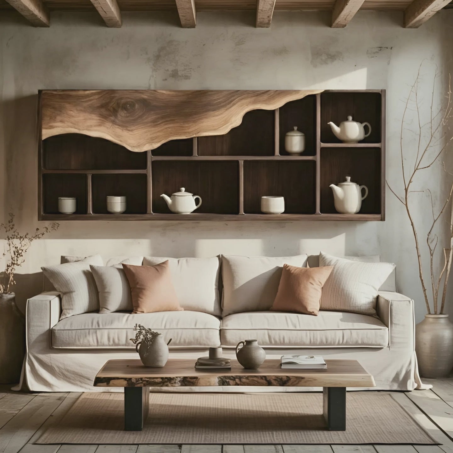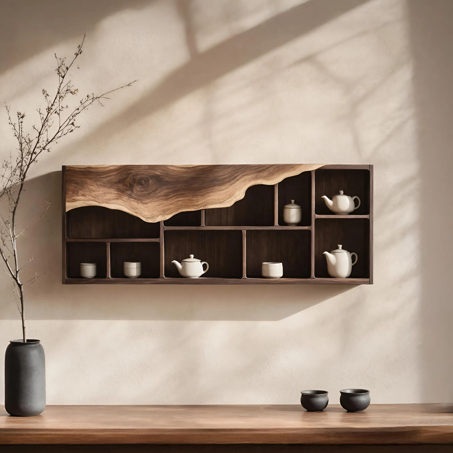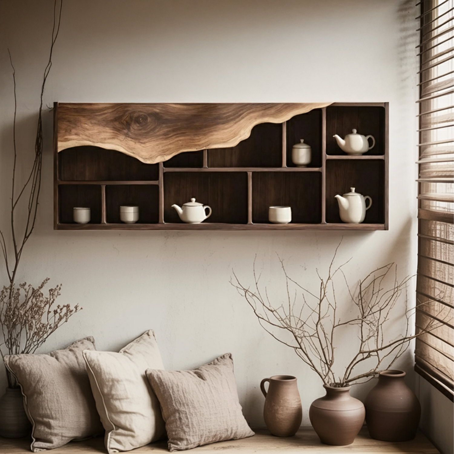 Crafted from genuine solid wood, each shelf showcases distinctive grain patterns, tonal variations, and raw edges. Natural characteristics like knots and texture differences give every piece its own identity and enhance its rustic appeal.
