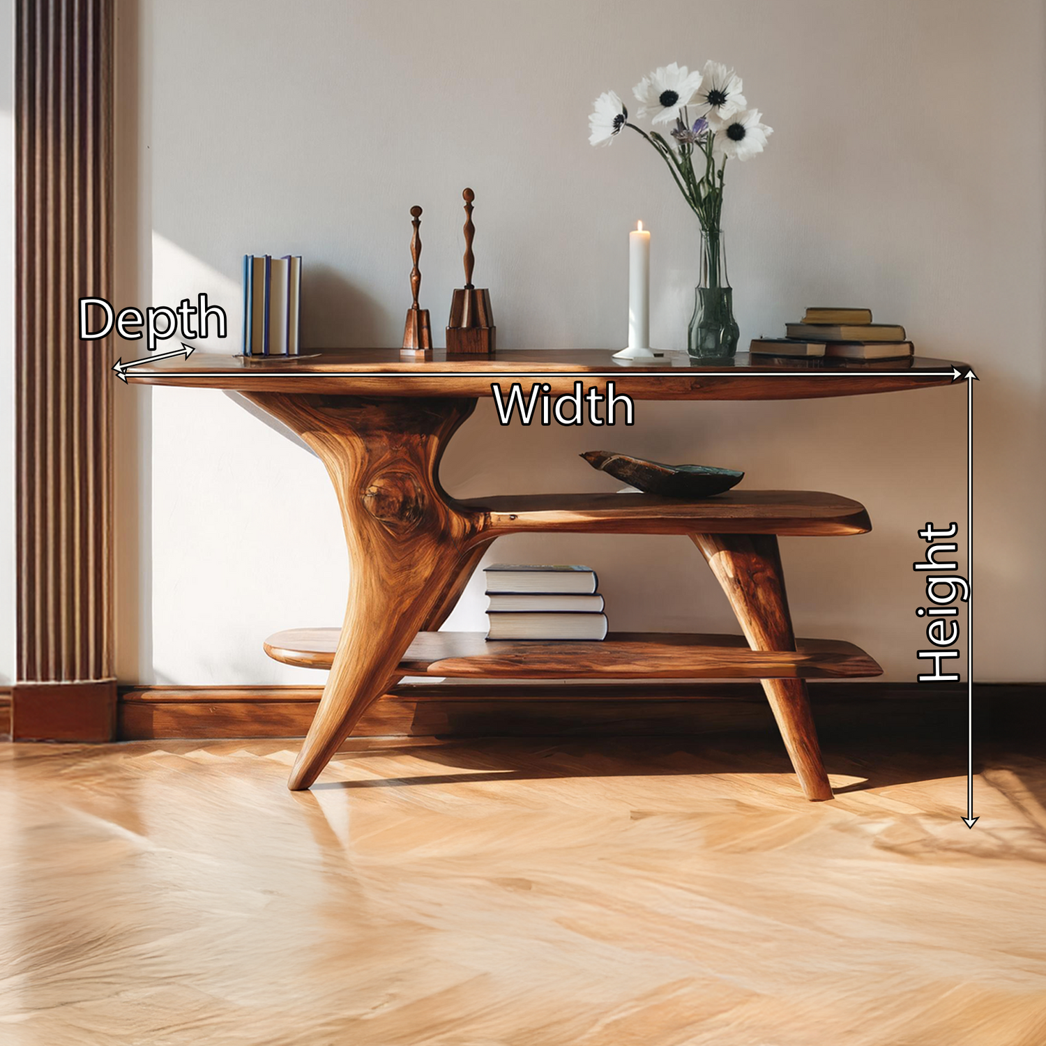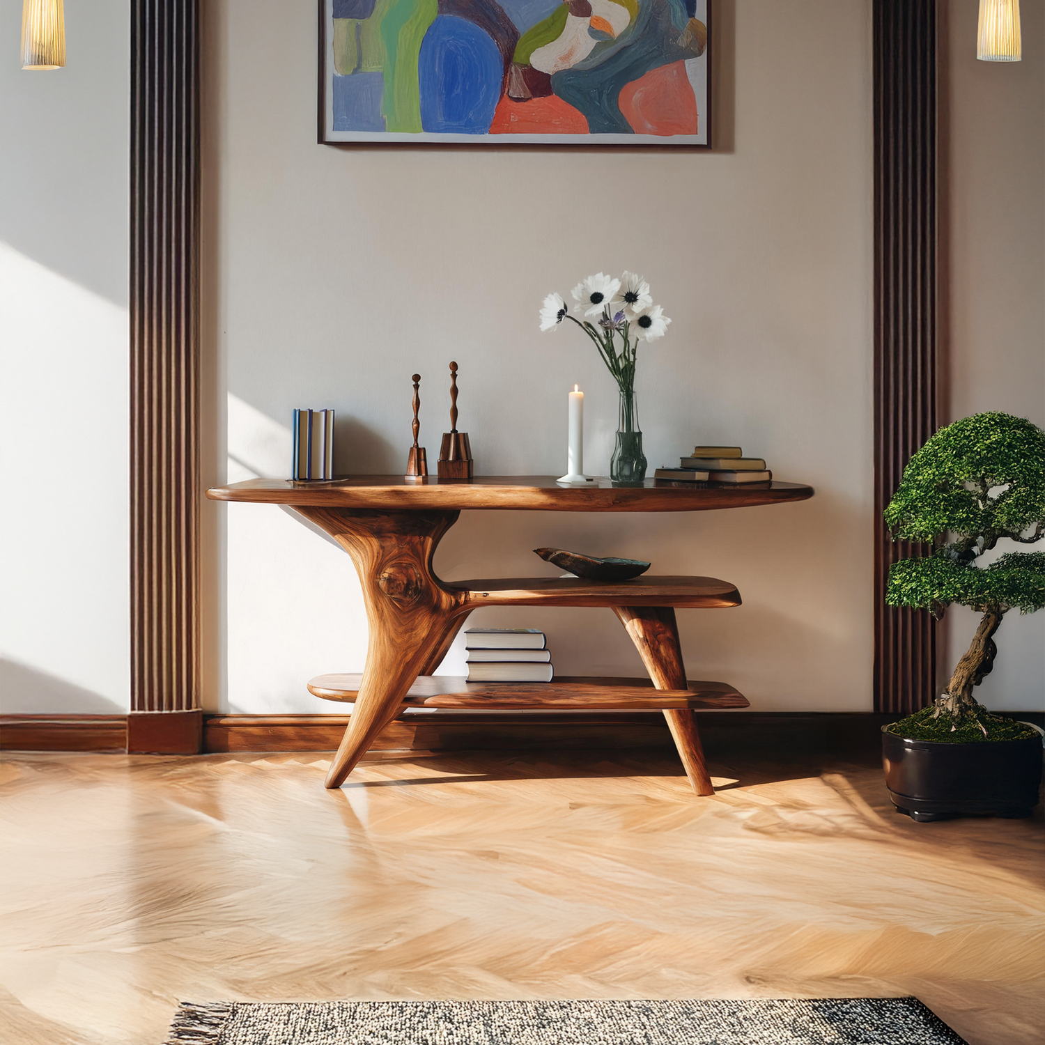 Made entirely from solid wood, every console table reflects the unique story of the material it’s built from. No two pieces are ever identical—each features distinct knots, color variations, and grain patterns that showcase the raw beauty of nature. This handcrafted quality ensures durability and authenticity, elevating it beyond a simple piece of furniture into a work of natural art.