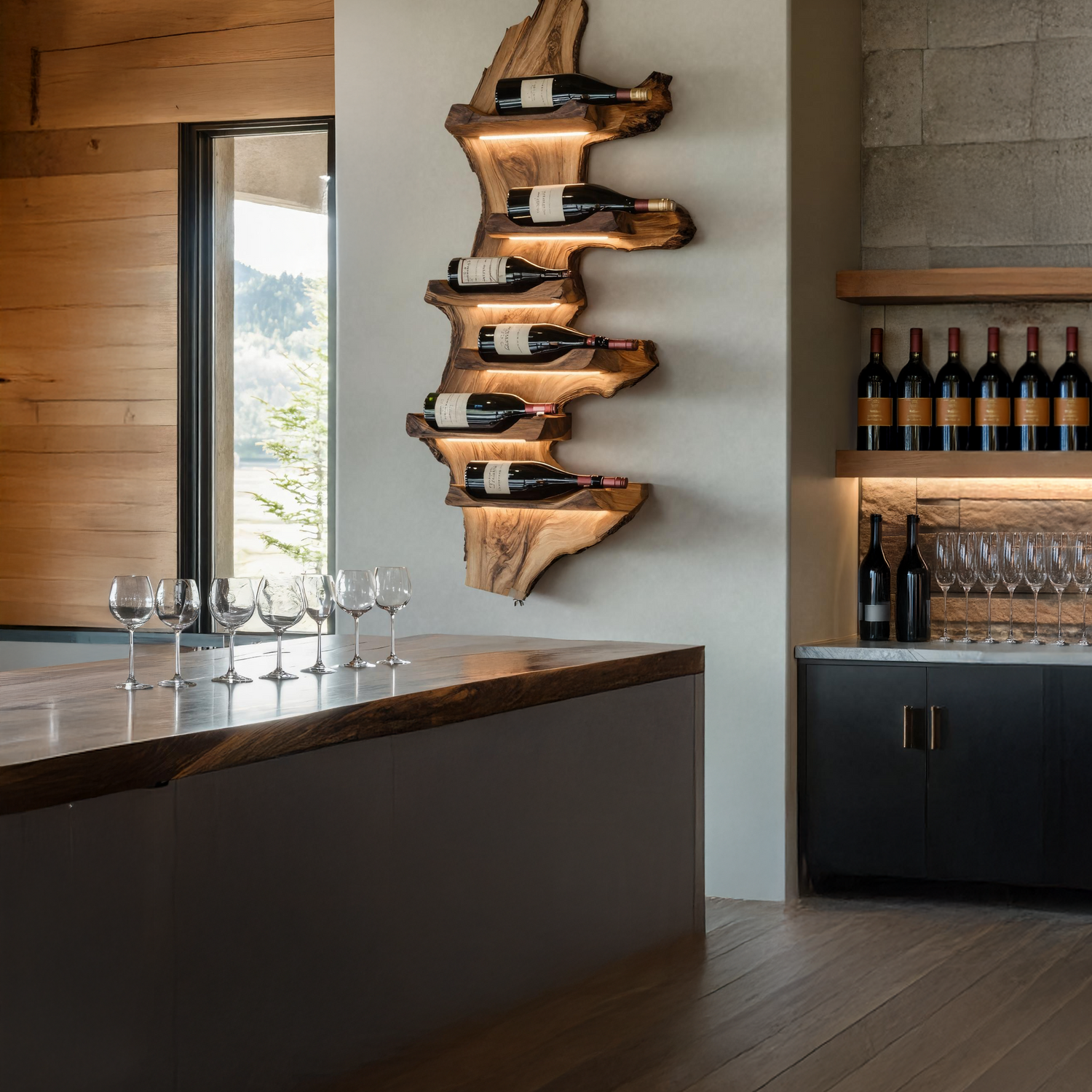Bring rustic charm and natural beauty to your home with the Farmhouse Live Edge Wine Holder For Entryway Furniture Decor. Handcrafted from solid wood, this wine holder showcases a beautifully contoured live edge that highlights the organic grain and warm texture of the material. Its farmhouse-inspired design blends simplicity with artisanal character, creating a welcoming accent that fits perfectly in an entryway, dining room, or living space. Ideal for displaying your favorite bottles with both style and practicality, it adds timeless rustic elegance to your home décor.