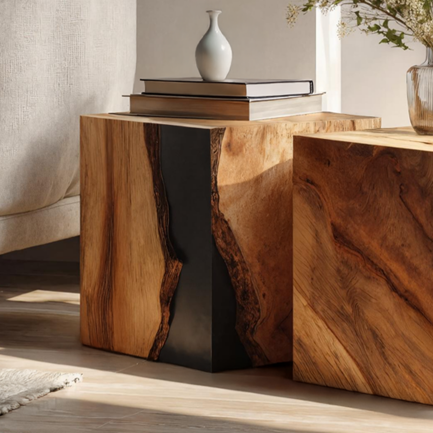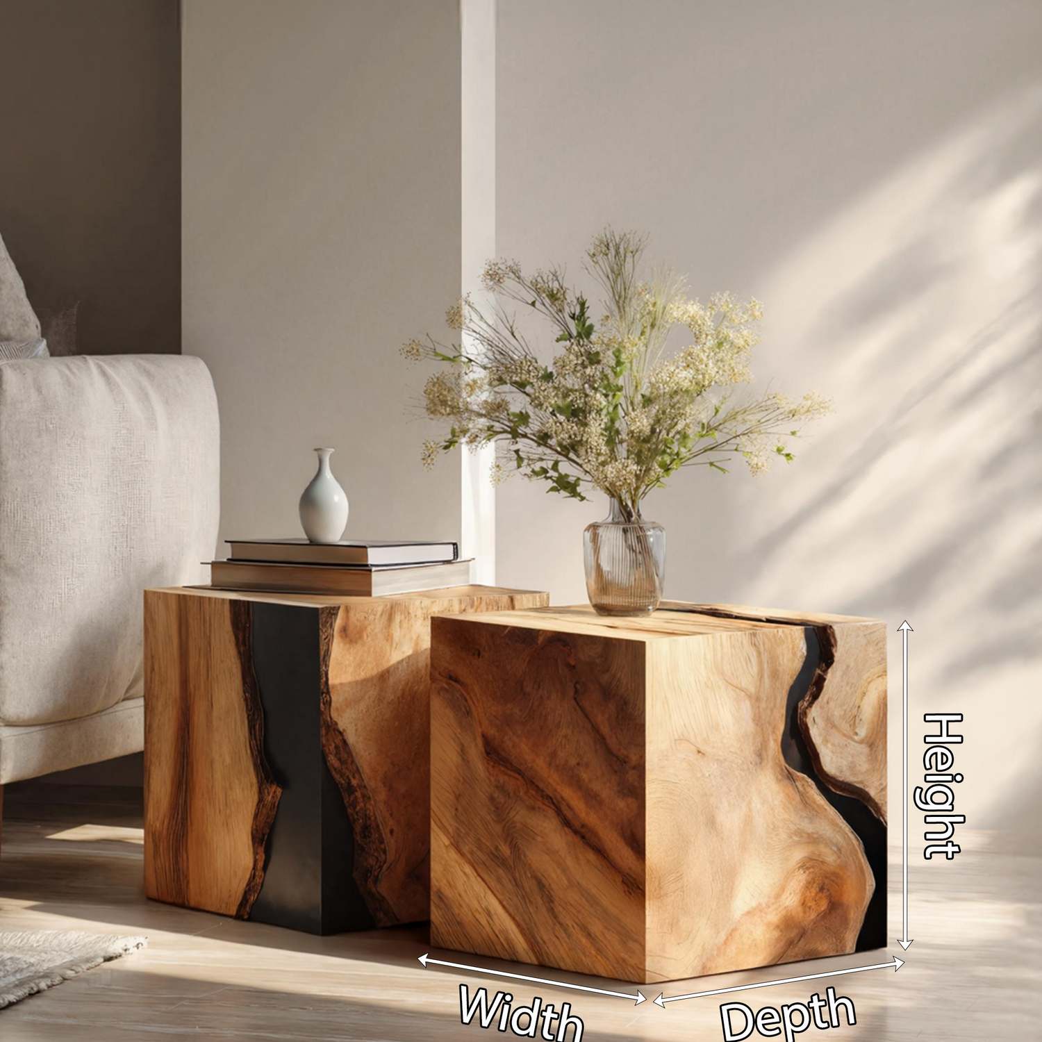 - Each table is entirely handcrafted, ensuring every piece is one-of-a-kind with its own distinctive tones, textures, and imperfections shaped by nature.