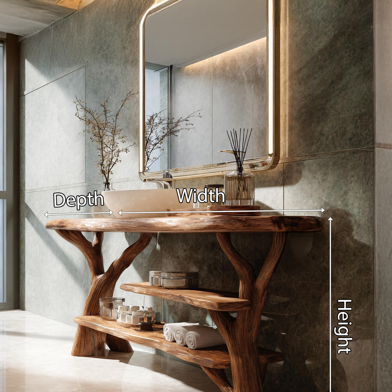 Revitalize your bathroom with our Handmade Wooden Bathroom Vanity, a perfect fusion of rustic charm and modern elegance. This vanity is thoughtfully designed to enhance both the style and functionality of your bathroom, making it a standout piece in any modern home.