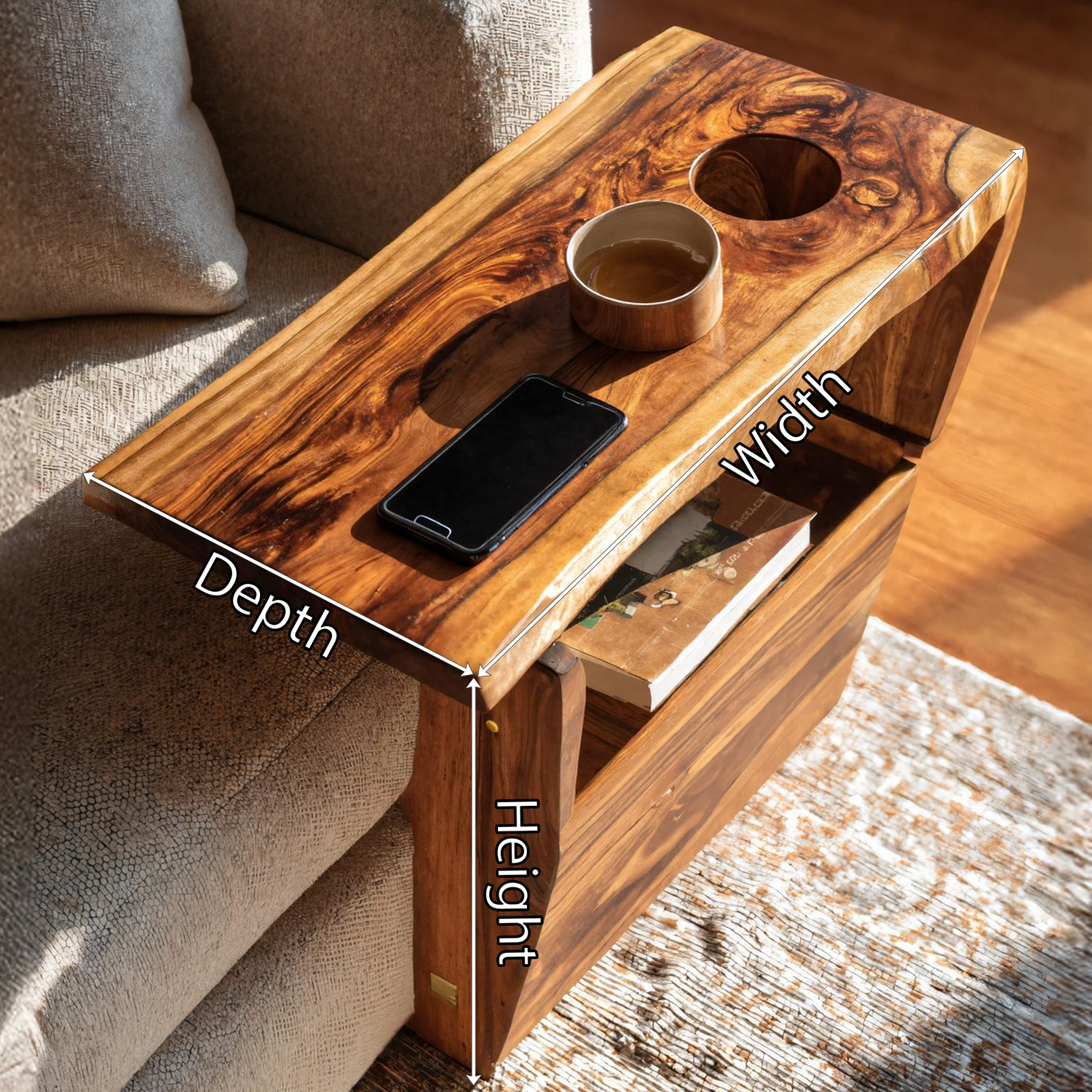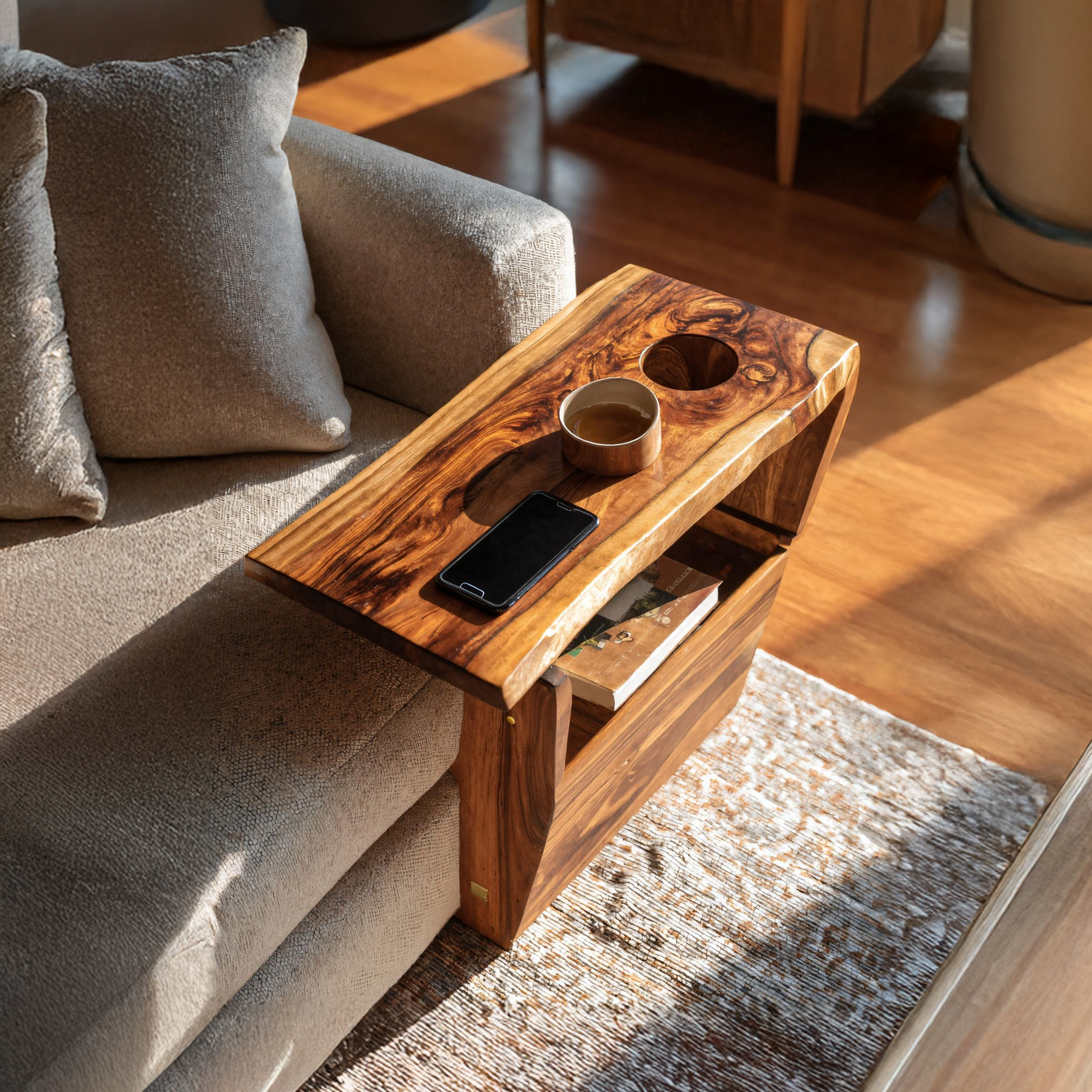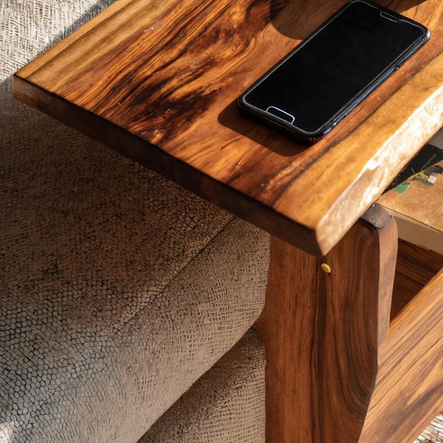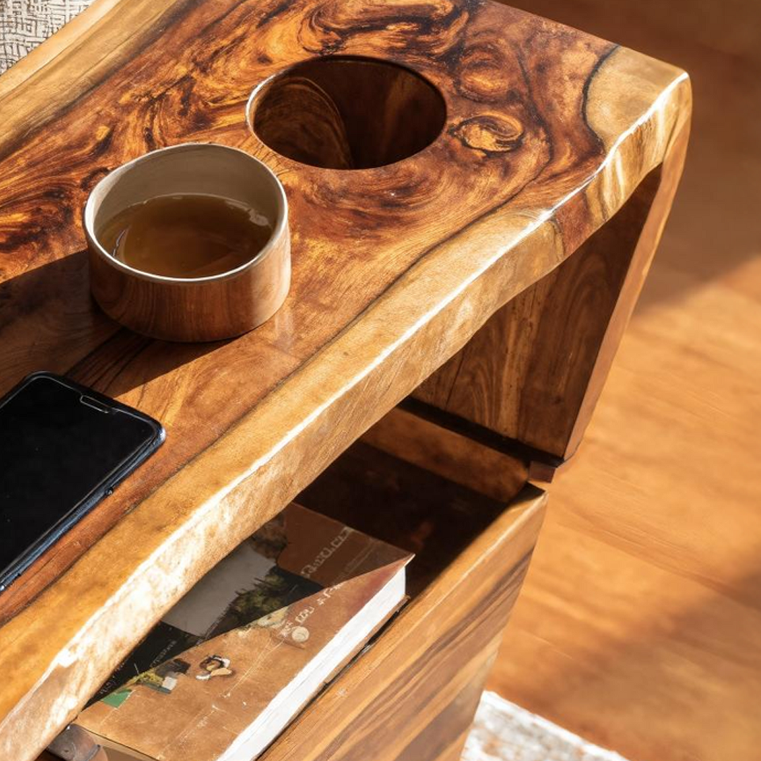 Each table is individually handmade from natural Monkeypod wood, chosen for its rich grain and sustainable qualities. The warm tones, organic textures, and variations in every slab ensure each piece is truly one of a kind.
