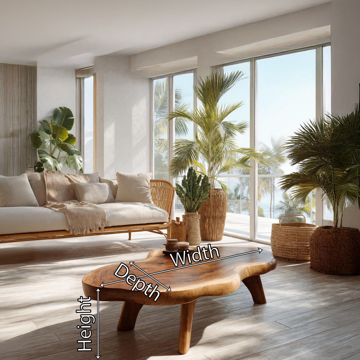 Note: Each table is handmade from natural wood, so slight variations in color, grain pattern, and texture are to be expected, making every piece truly one-of-a-kind.