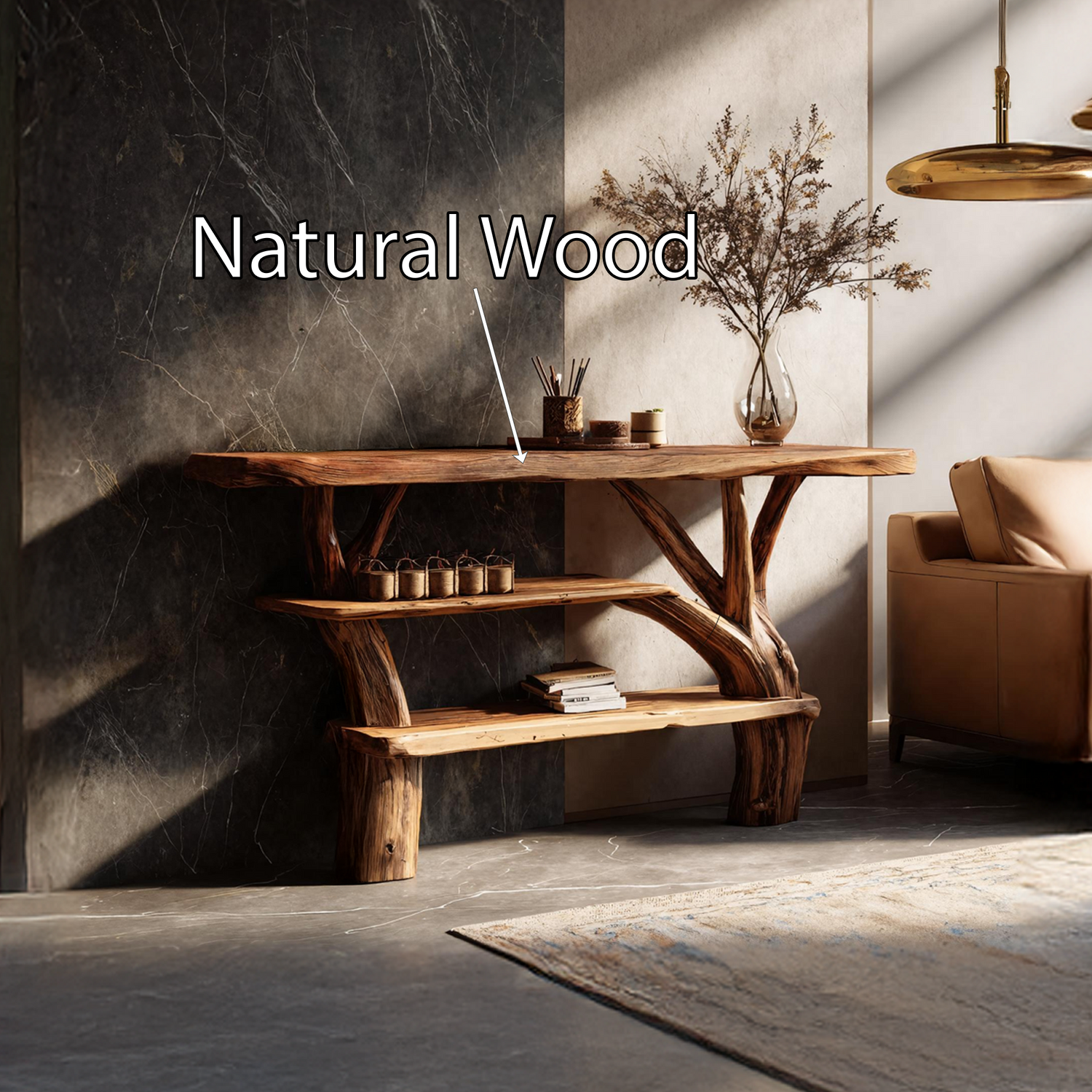 Crafted entirely from solid rustic wood, this console table celebrates nature’s organic beauty. The rich grain and distinct patterns make each piece truly one-of-a-kind, adding warmth and individuality to your living space.