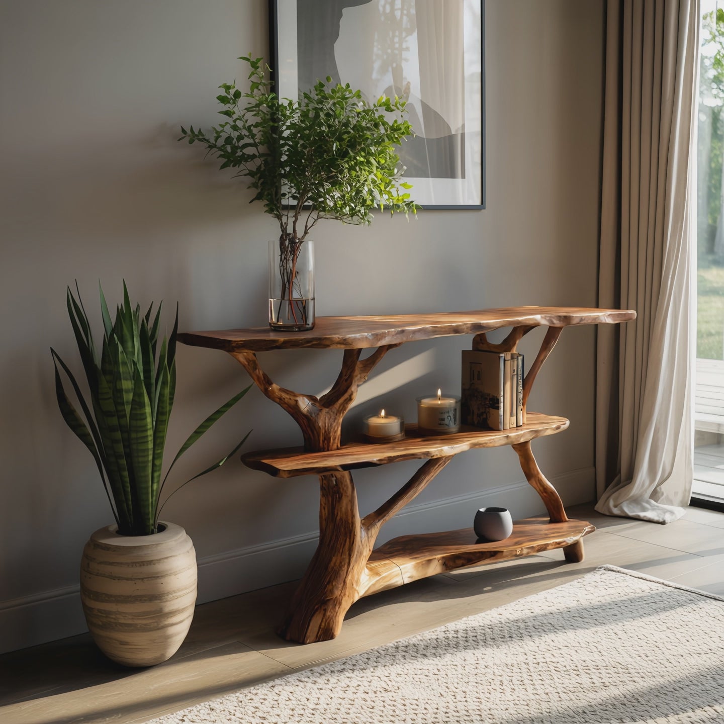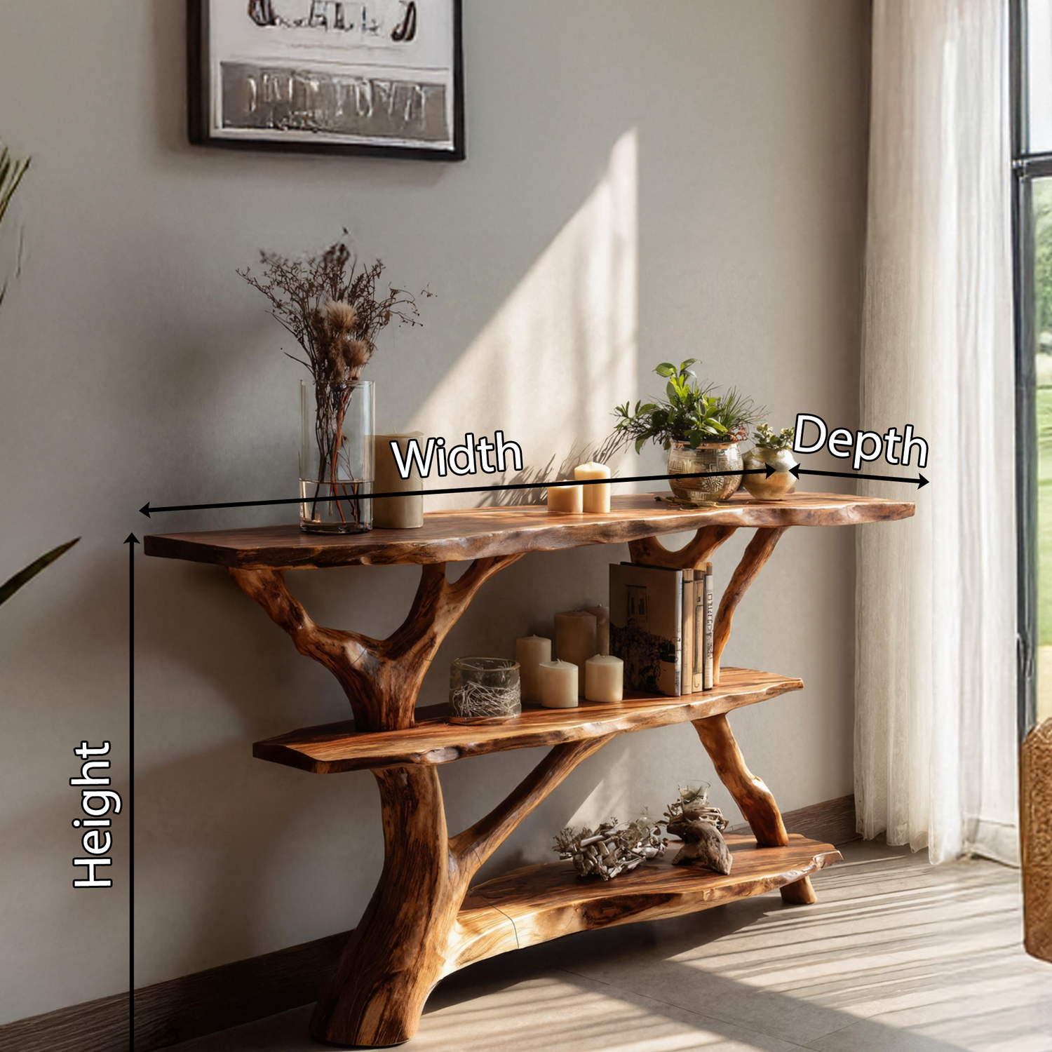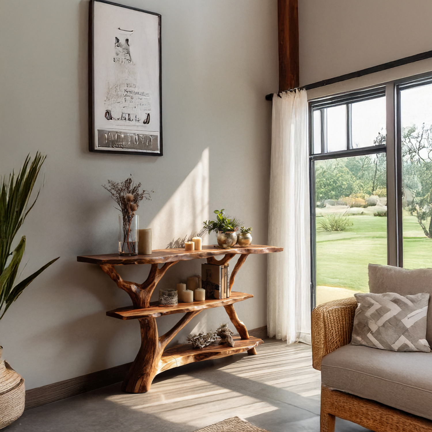 Made entirely from solid wood, every console table reflects the unique story of the material it’s built from. No two pieces are ever identical—each features distinct knots, color variations, and grain patterns that showcase the raw beauty of nature. This handcrafted quality ensures durability and authenticity, elevating it beyond a simple piece of furniture into a work of natural art.