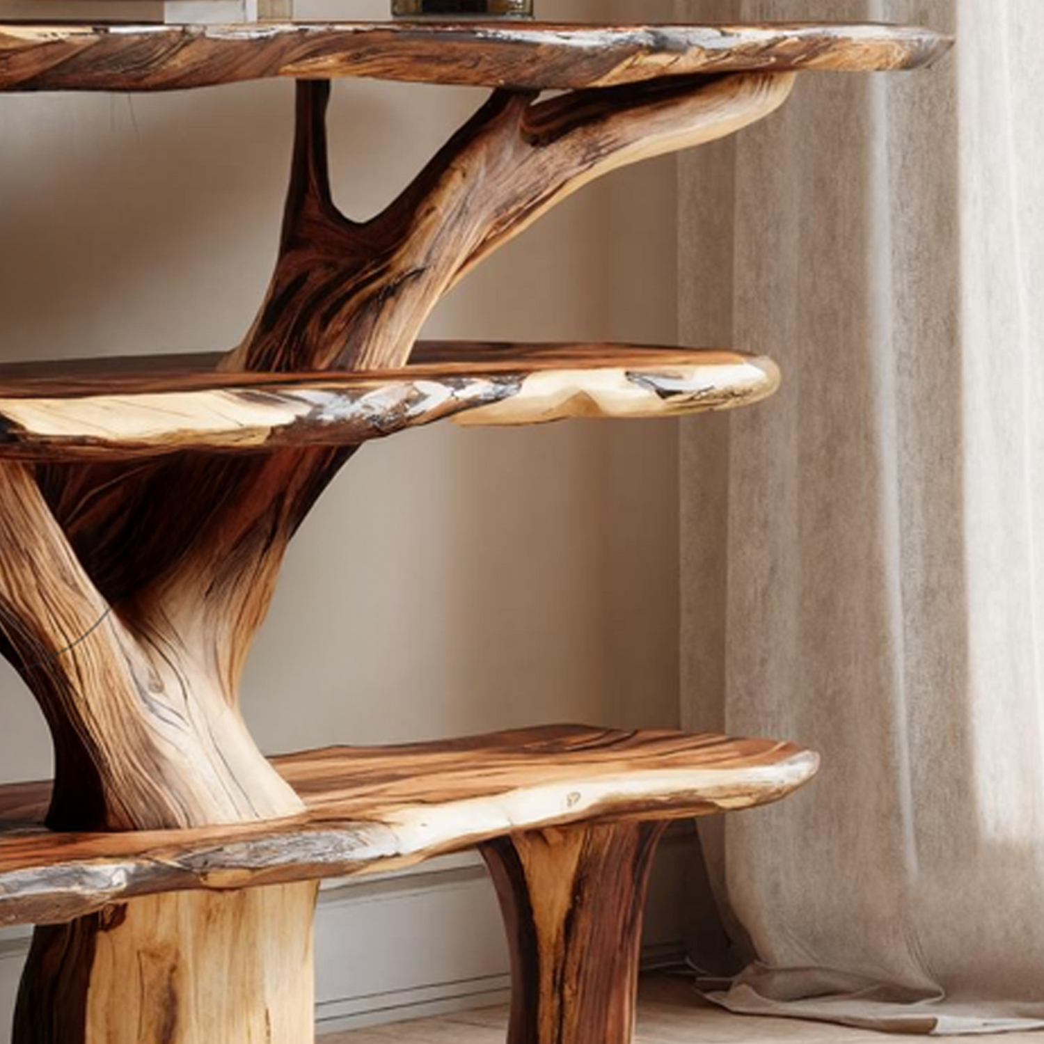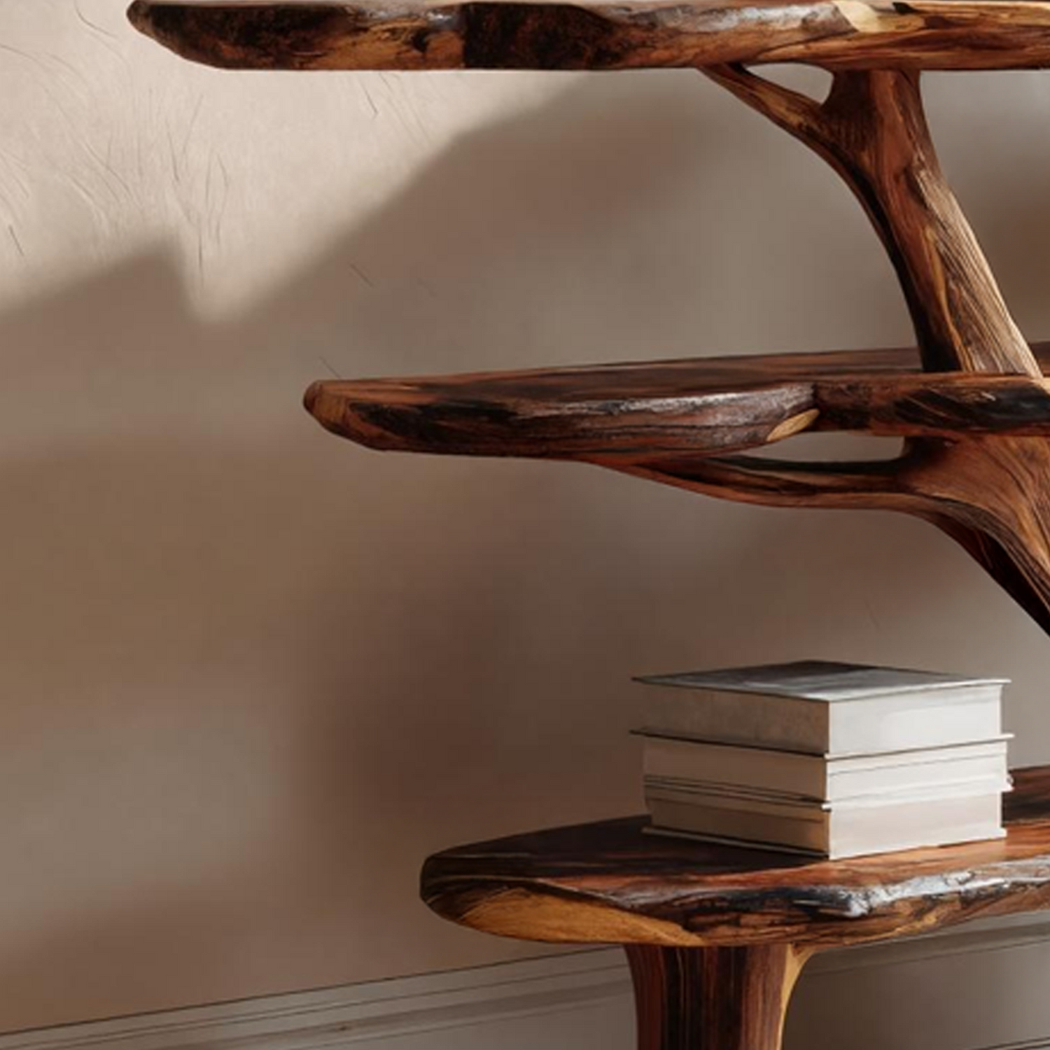 Each table is meticulously shaped to highlight the natural wood grain and organic live edges, giving every piece its own character. The smooth surface and minimalist silhouette create a striking contrast between rustic texture and modern design. With its rich tones and natural imperfections, this table adds depth, warmth, and elegance to any room.