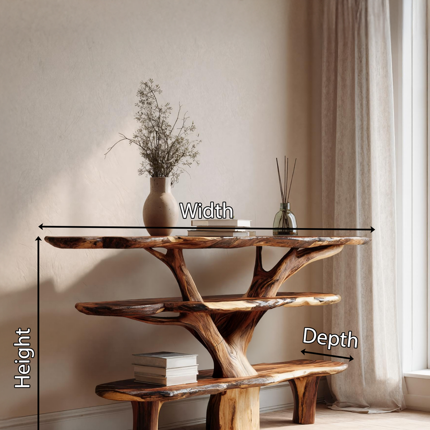 Made entirely from solid wood, every console table reflects the unique story of the material it’s built from. No two pieces are ever identical—each features distinct knots, color variations, and grain patterns that showcase the raw beauty of nature. This handcrafted quality ensures durability and authenticity, elevating it beyond a simple piece of furniture into a work of natural art.