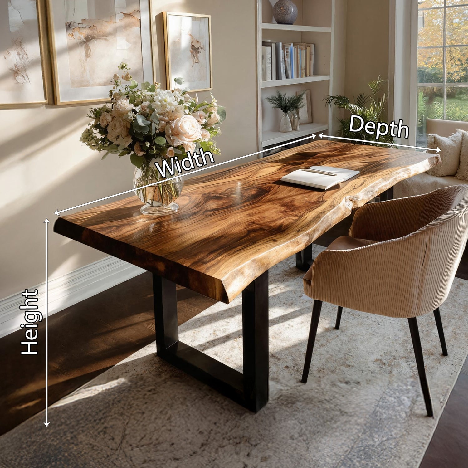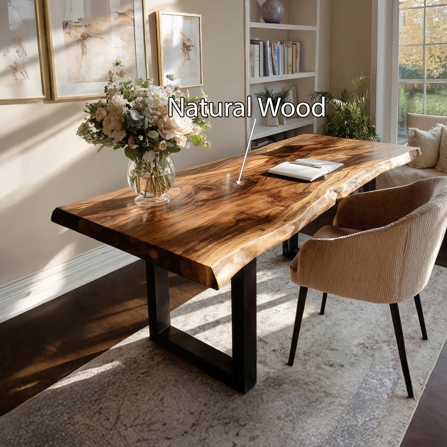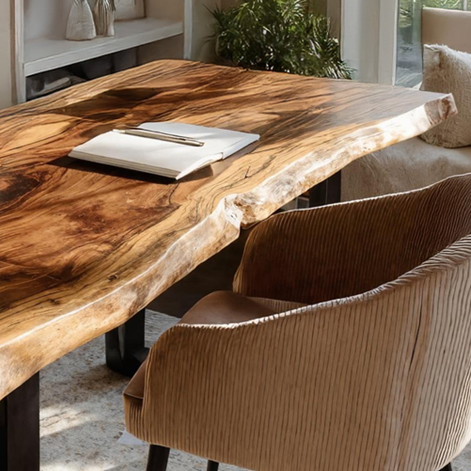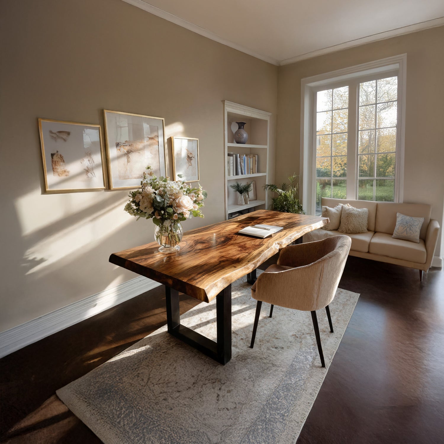 This desk is meticulously handcrafted from carefully selected solid monkey pod wood, showcasing flowing live edges, rich grain movement, and natural variations that make each piece one-of-a-kind. Designed with a timeless silhouette, it blends artisanal craftsmanship with enduring functionality, suitable for both contemporary and rustic-inspired spaces.