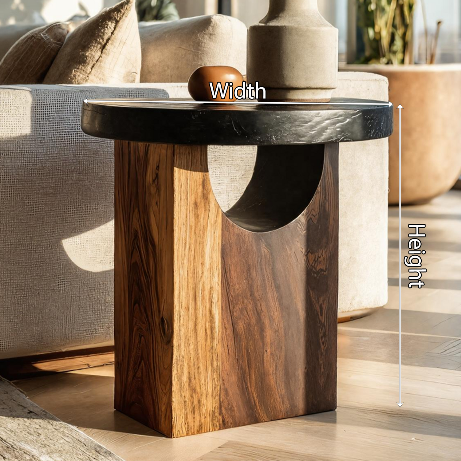 Featuring a smooth, hand-polished surface and an organic silhouette, this side table blends contemporary aesthetics with natural form. Its sculptural presence and ergonomic contours make it a visually striking accent that complements both modern and rustic interiors.