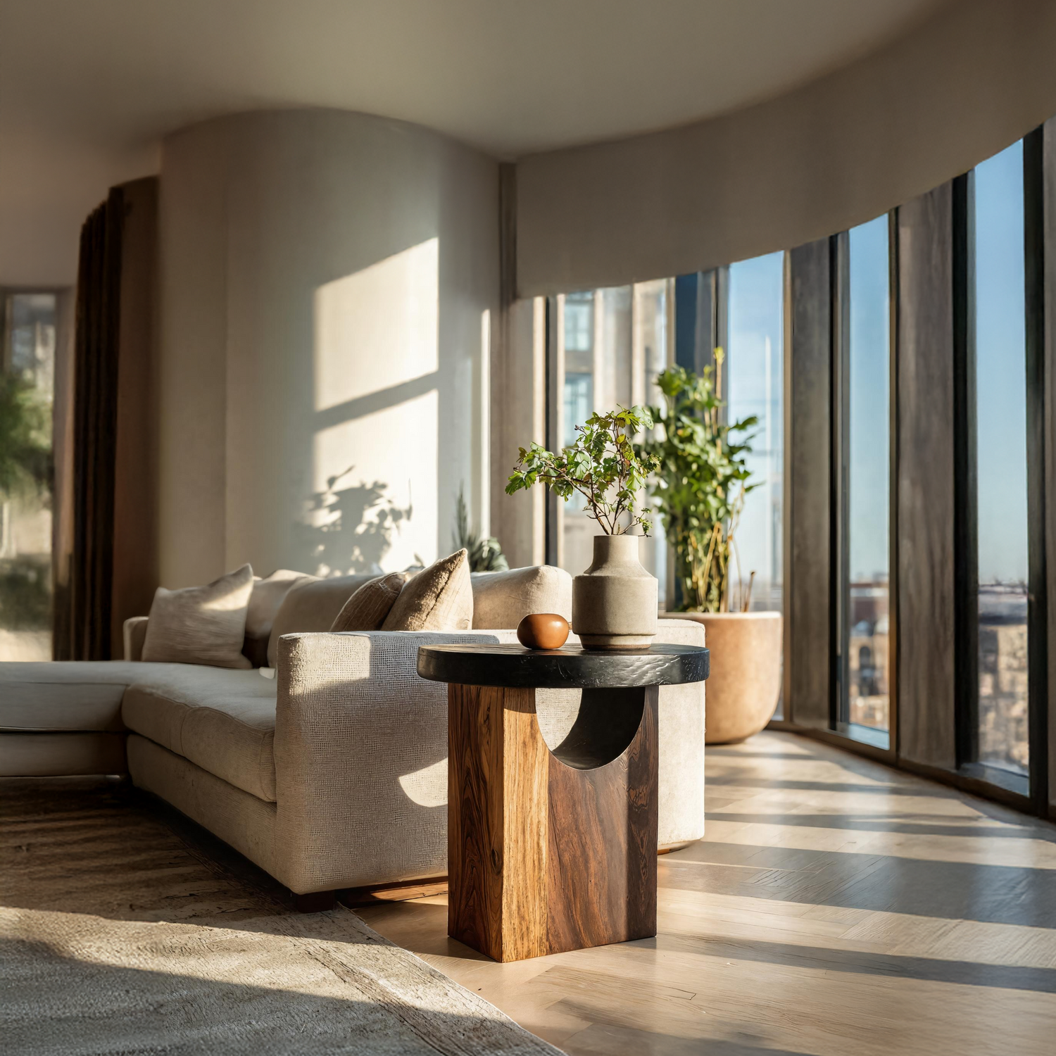 Each table is individually made by skilled artisans, highlighting the natural grain and organic flow of solid wood. Subtle variations in color and form are celebrated, ensuring no two pieces are ever the same.