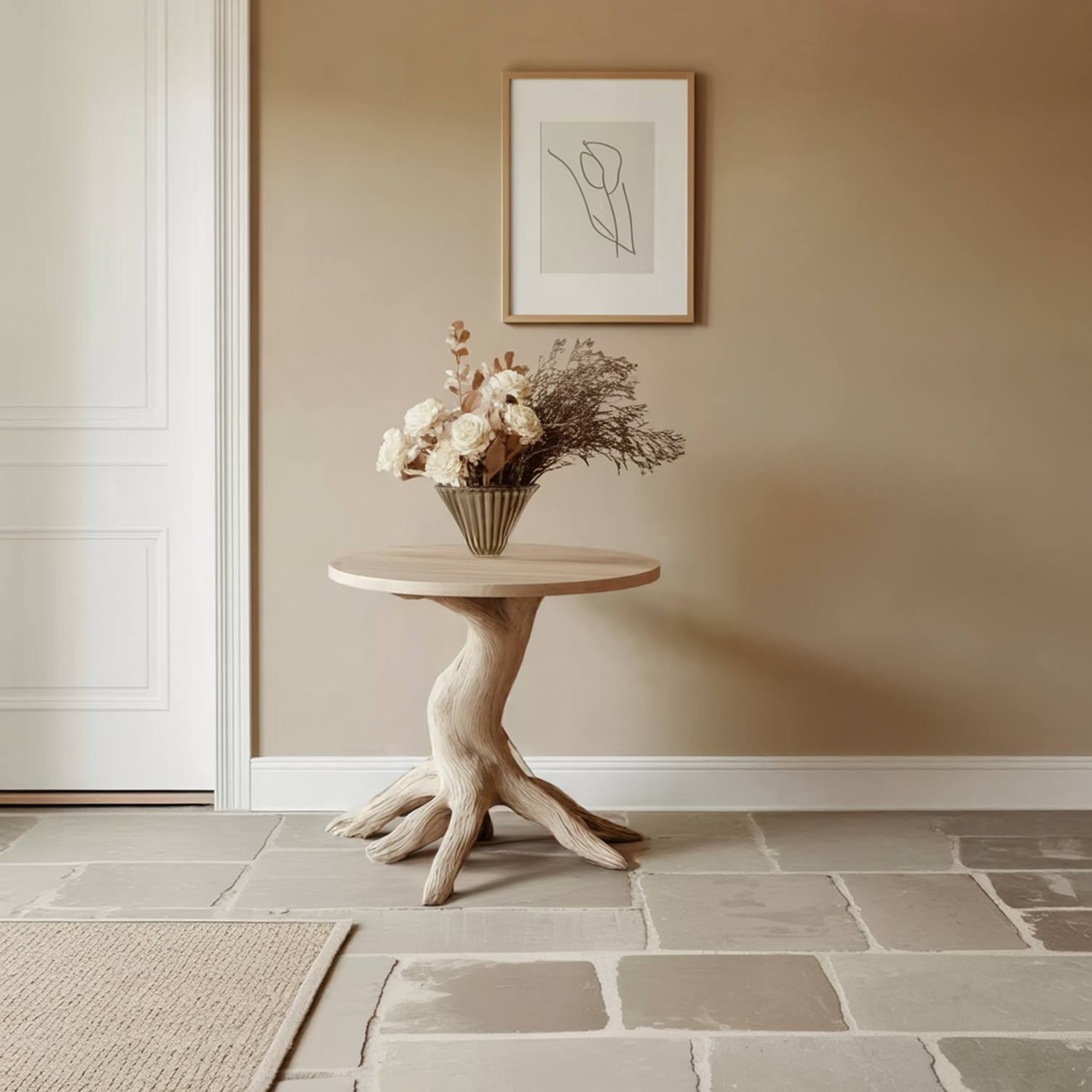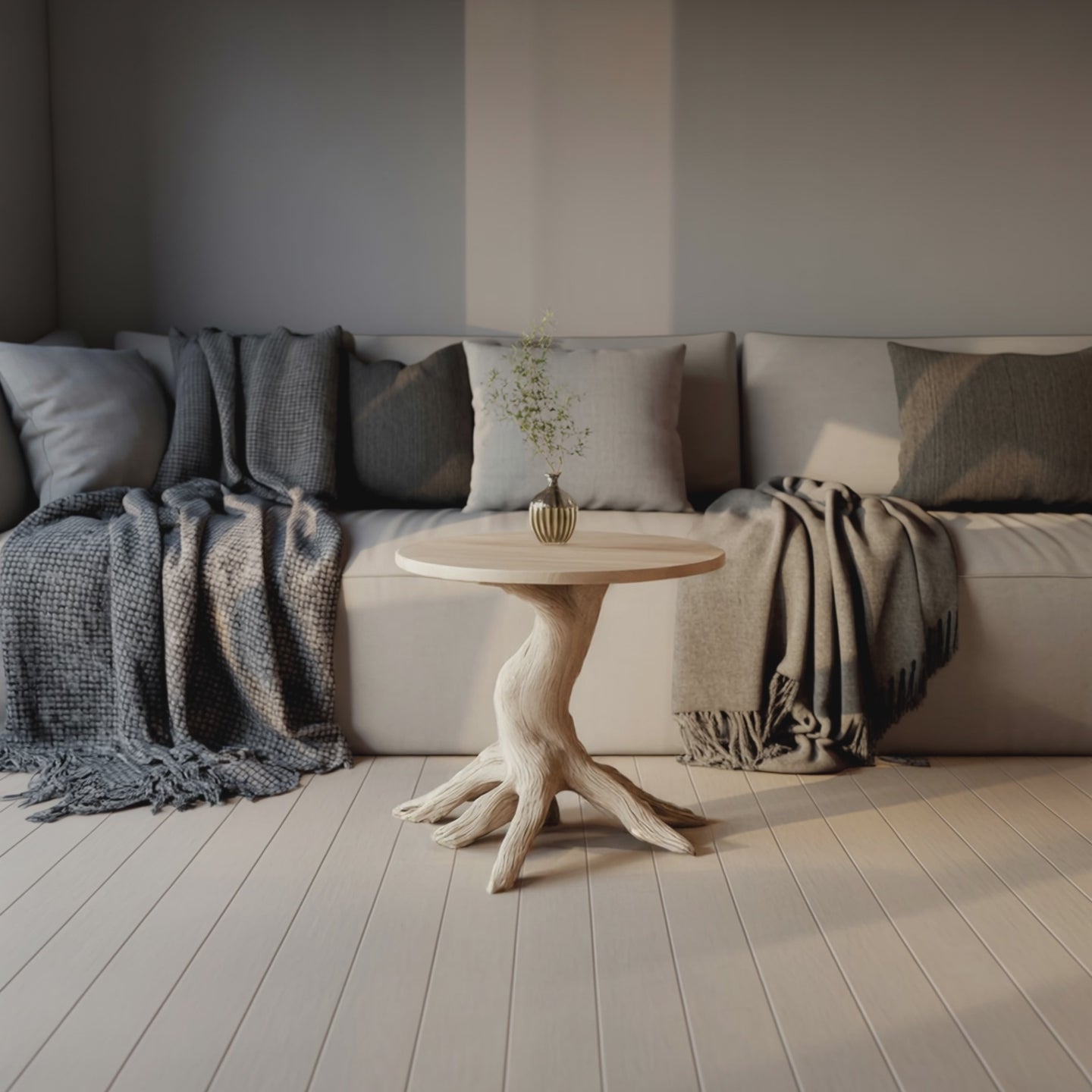 Every piece is individually made, ensuring no two tables are alike. Variations in color, grain, and small natural imperfections are part of the design, giving each table its own story and charm.
