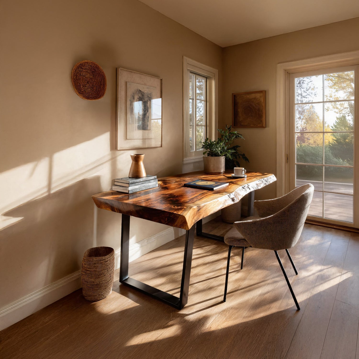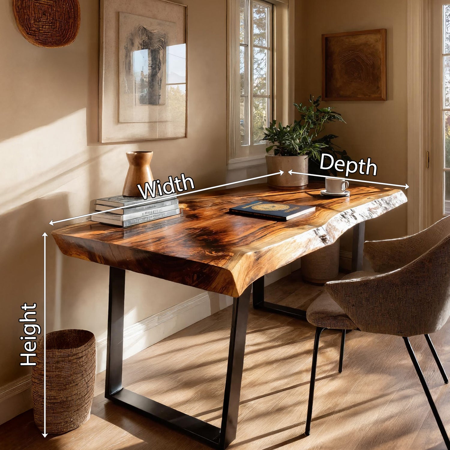 Introduce natural charm and timeless character to your space with this Farmhouse Solid Wood Live Edge Desk For Interior Decor, crafted to showcase the expressive grain, organic edges, and warm presence of genuine solid wood. The handcrafted live edge design brings a raw yet refined aesthetic, while the farmhouse-inspired silhouette adds a sense of comfort and authenticity to your interior. Perfect for work, reading, or creative tasks, this desk serves as both a functional workspace and a striking decorative centerpiece—enhancing modern, rustic, or transitional home settings with ease.